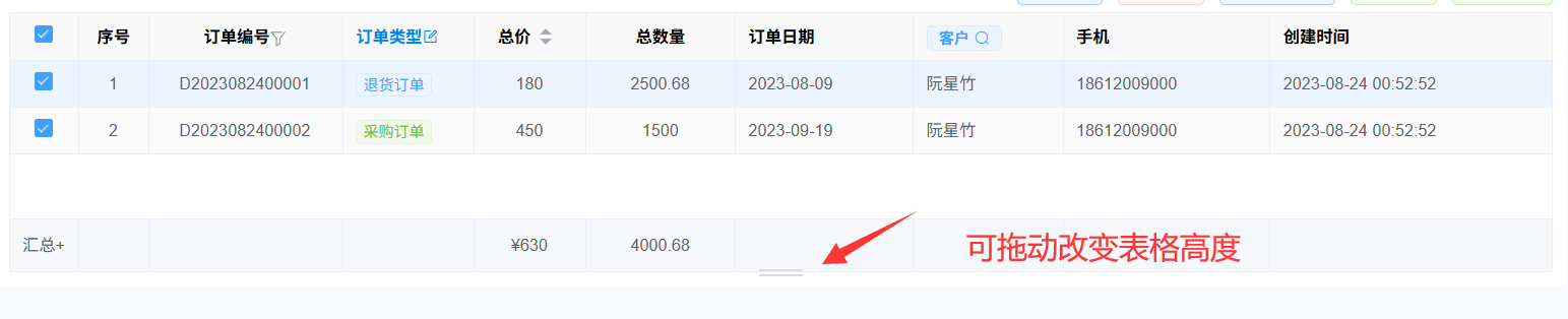 1.功能:自动绑定数据源、自定义合计格式、(行单击、双击、复选框)事件、设置默认选中行、拖拽行排序、表头筛选、固定列、文本居中、文本超出换行显示、超出提示信息、自定义表头、行号、复选框、禁用复选框选中、拖动右下角改变高度