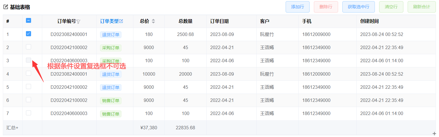 - 合计功能: 支持列合计,可自定义合计格式